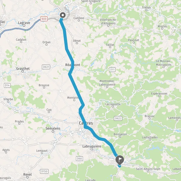 Tourner à droite sur D612 (Route d'Albi) et continuer sur 3,4 kilomètres
