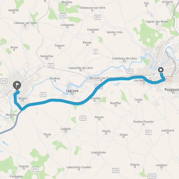 | Distance en voiture | 22,0 km à 26,9 km |