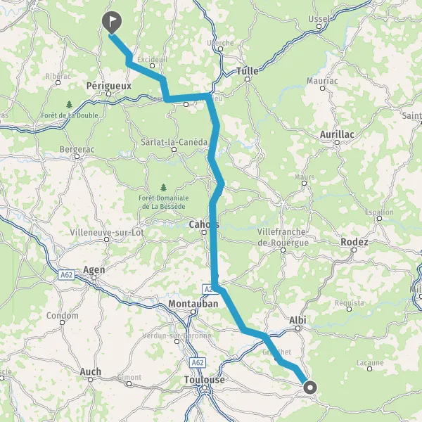 Tourner à droite sur D964 (Route de Gaillac) et continuer sur 14 kilomètres