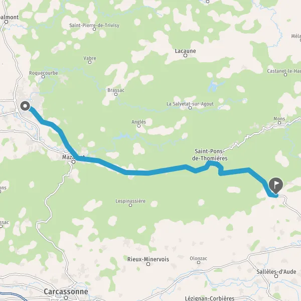 Au rond-point, prendre la 3ème sortie sur D612 (Route de Mazamet) et continuer sur 11 kilomètres