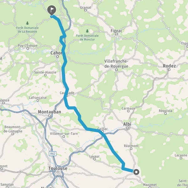 Au rond-point, prendre la 1ère sortie sur D820 (Route de Cahors) et continuer sur 16 kilomètres