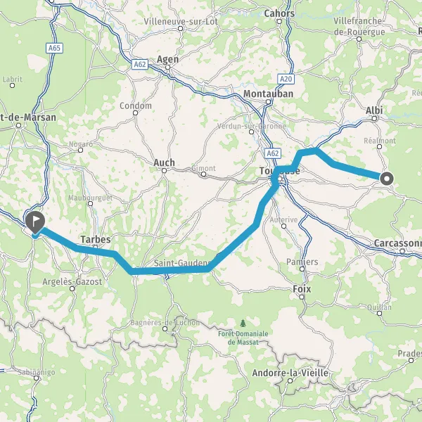 Prendre à droite et rejoindre A620 E80. Continuer sur 7 kilomètres