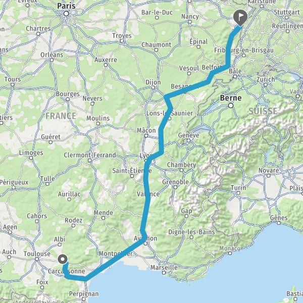 Prendre à droite et rejoindre A36. Continuer sur 225 kilomètres