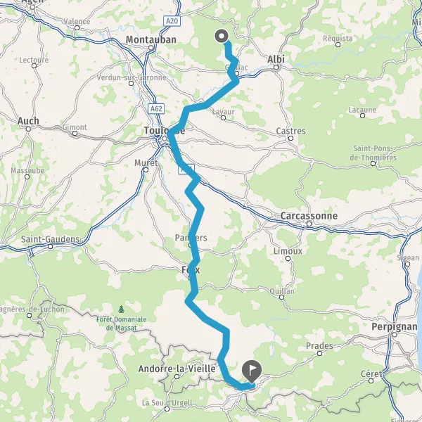 Prendre à gauche et rejoindre A61. Continuer sur 20 kilomètres