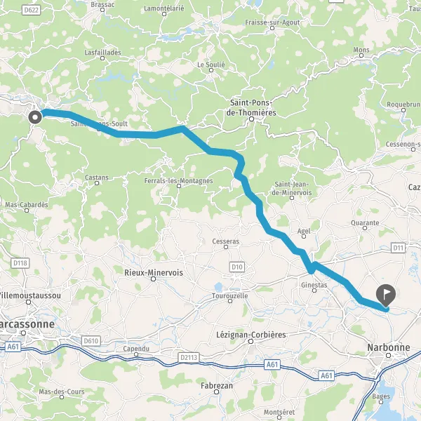 Au rond-point, prendre la 2ème sortie sur D612 (Route de Toulouse à Agde) et continuer sur 21 kilomètres