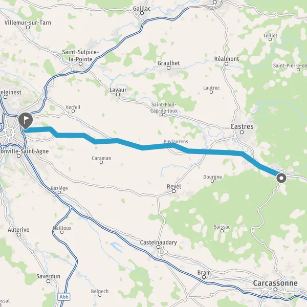 Continuer Avenue de Castres sur 3,6 kilomètres
