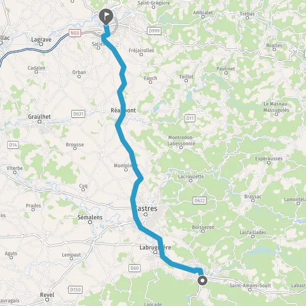 Tourner à gauche sur D71 (Route Vieille d'Albi) et continuer sur 11 kilomètres