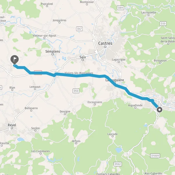 Au rond-point, prendre la 2ème sortie sur D621 (Route de Labruguière) et continuer sur 3 kilomètres