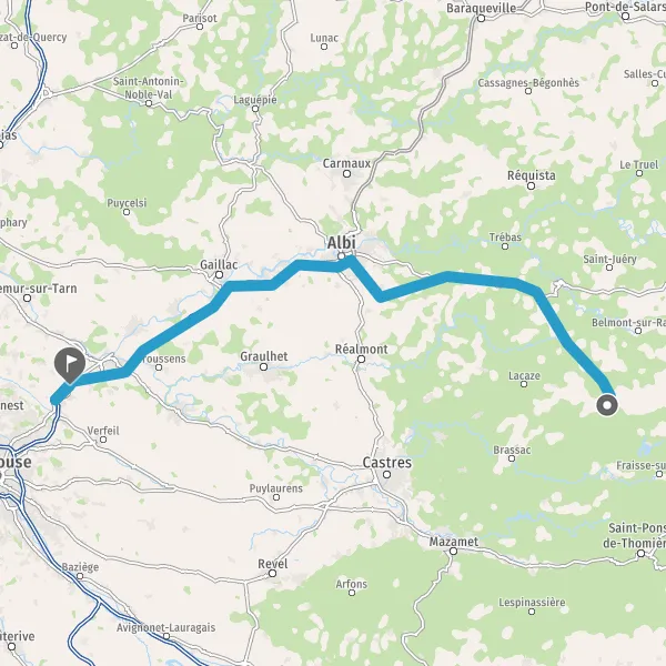 Tourner à droite sur D607 (Route d'Albi) et continuer sur 22 kilomètres