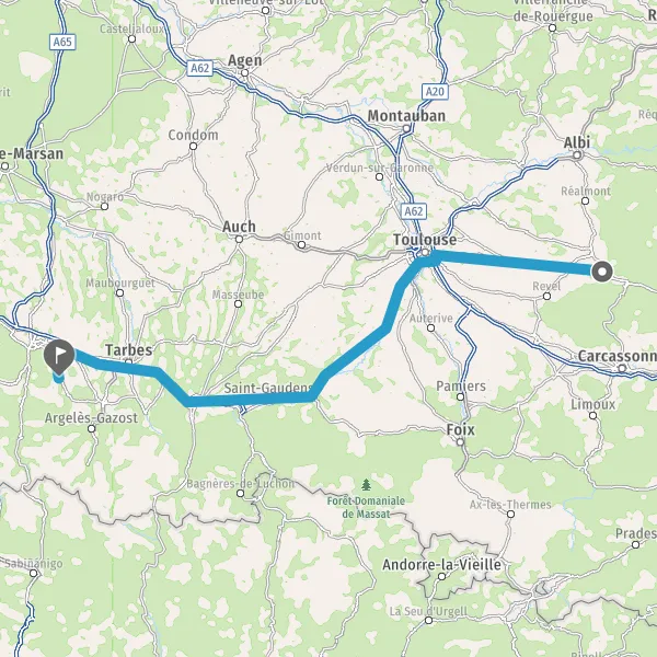 Prendre à droite et rejoindre A620 E80. Continuer sur 7 kilomètres