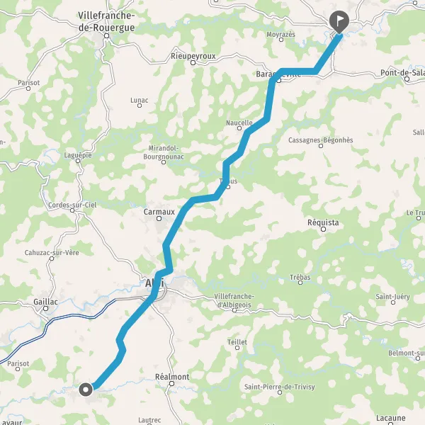 Au rond-point, prendre la 3ème sortie sur D84 (Route d'Albi) et continuer sur 3,3 kilomètres