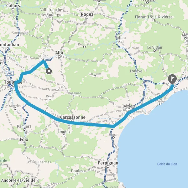 Prendre à gauche et rejoindre A61. Continuer sur 20 kilomètres