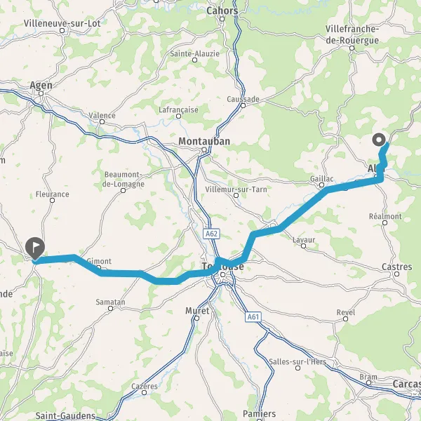 Prendre à droite et rejoindre A62. Continuer sur 4,8 kilomètres