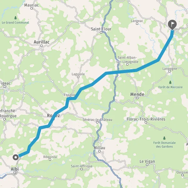 Tourner légèrement à gauche sur D987 (Place du Foirail) et continuer sur 22 kilomètres