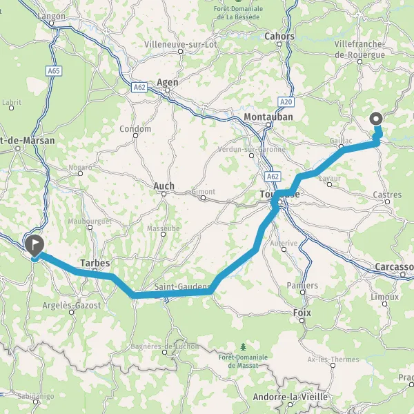 Prendre à droite et rejoindre A62. Continuer sur 4,8 kilomètres