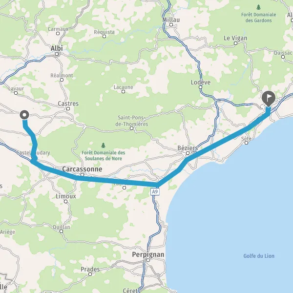 Continuer et rejoindre A9 E15 E80. Continuer sur 84 kilomètres