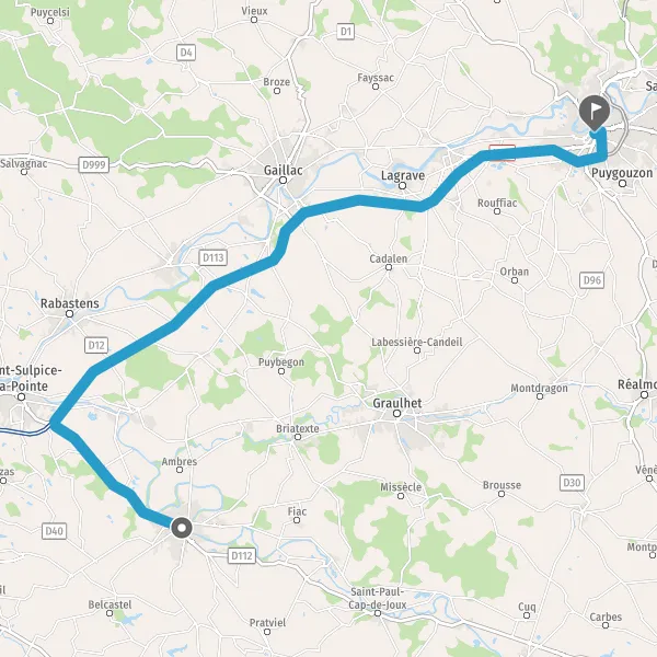 Tourner légèrement à droite sur D630 (Route de Lavaur) et continuer sur 3,3 kilomètres
