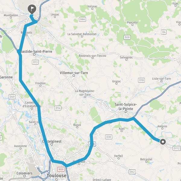 Au rond-point, prendre la 2ème sortie sur D630 (Route de Montauban) et continuer sur 5,6 kilomètres