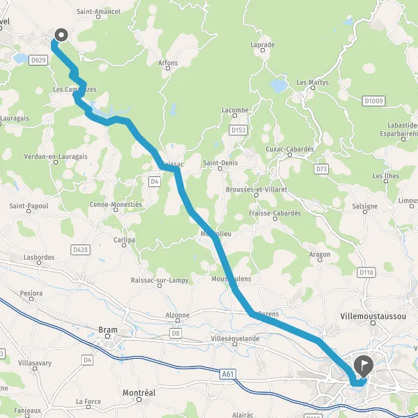 Tourner à droite sur D629 (Avenue de Ramel) et continuer sur 3,6 kilomètres