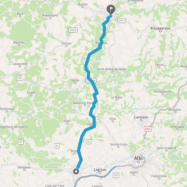 Tourner légèrement à gauche sur D922 (Route de Saint-Martin Laguépie) et continuer sur 6,3 kilomètres