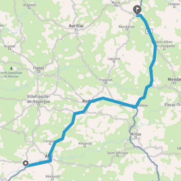 Au rond-point, prendre la 3ème sortie sur N88 (Route de Laissac) et continuer sur 32 kilomètres