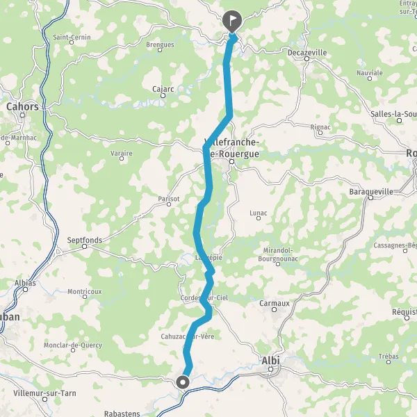 Tourner à droite sur D922 (Route de Gaillac) et continuer sur 13 kilomètres