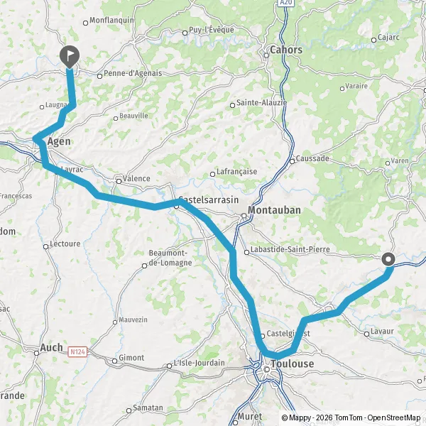 Au rond-point, prendre la 4ème sortie sur N21 (Avenue du Caoulet) et continuer sur 6,5 kilomètres