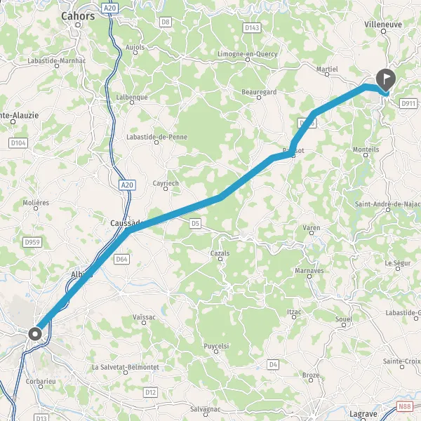 Au rond-point, prendre la 2ème sortie sur D911 (Avenue du Quercy) et continuer sur 1,1 kilomètre