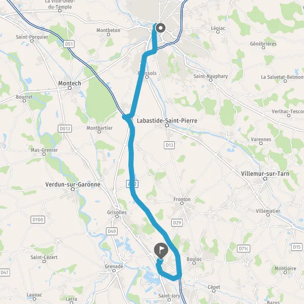 Au rond-point, prendre la 2ème sortie sur D820 (Route de Montauban) et continuer sur 4,8 kilomètres