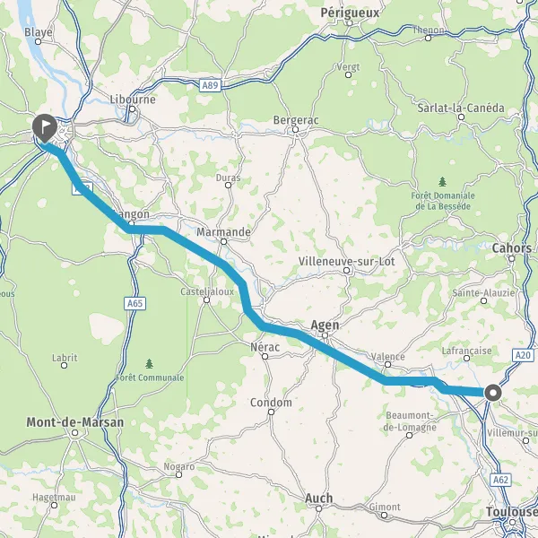 Prendre à droite et rejoindre A62. Continuer sur 168 kilomètres