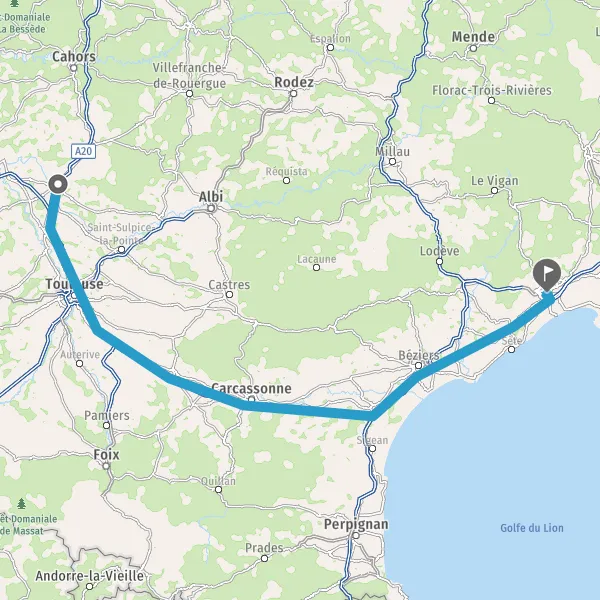 Prendre à gauche et rejoindre A61. Continuer sur 20 kilomètres