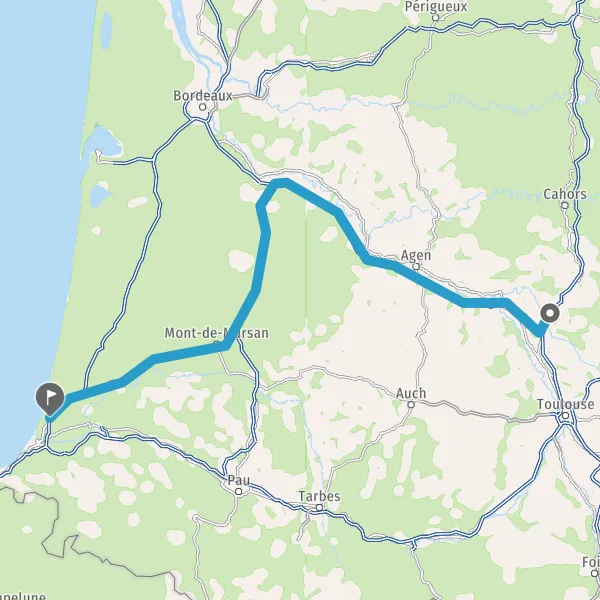 Prendre à droite et rejoindre A63 E5 E70. Continuer sur 15 kilomètres