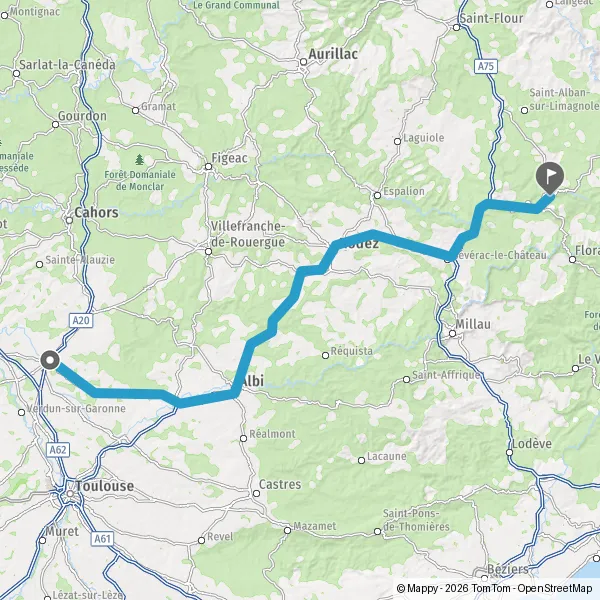 Tourner à droite sur D45 (Route de Saint-Geniez) et continuer sur 13 kilomètres