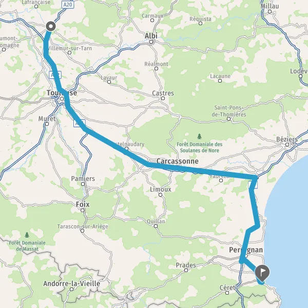 Prendre à droite et rejoindre A9 E15. Continuer sur 60 kilomètres