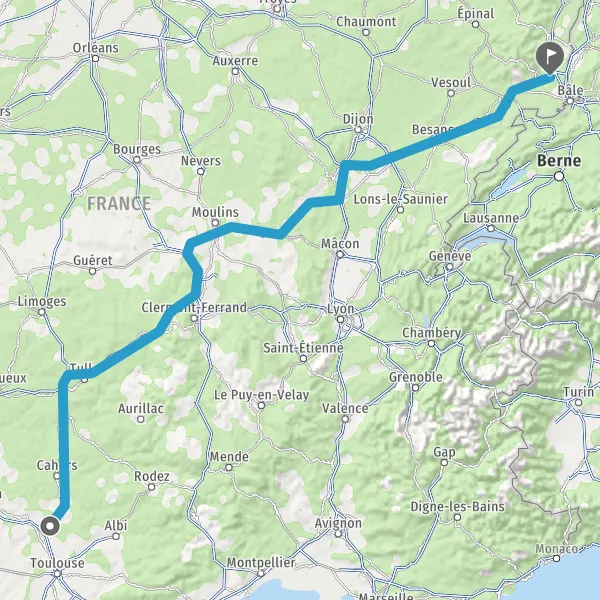 Prendre à droite et rejoindre A36. Continuer sur 221 kilomètres
