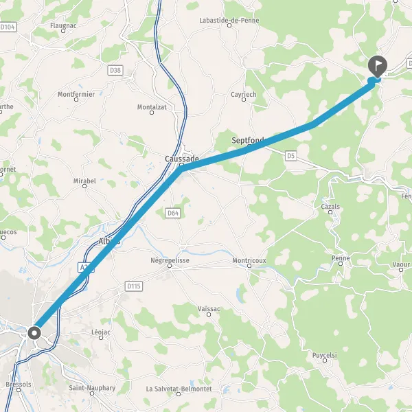 Au rond-point, prendre la 1ère sortie sur D926 (Route de Montauban) et continuer sur 2,1 kilomètres