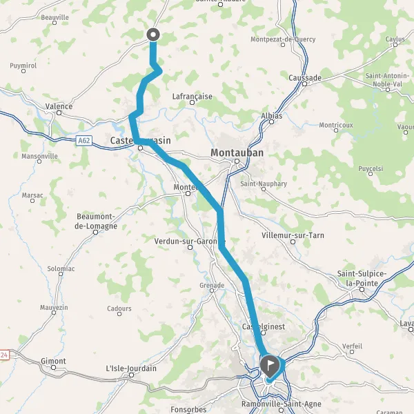 Continuer A62 E72 sur 55 kilomètres