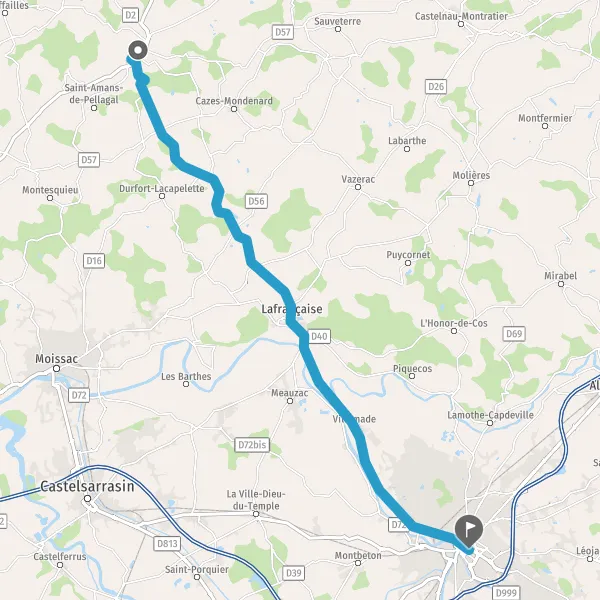 Au rond-point, prendre la 2ème sortie sur D2 (Route de Lafrançaise) et continuer sur 2,2 kilomètres