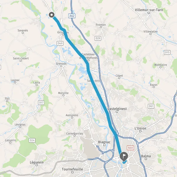 Prendre D813 (Route de Toulouse) et continuer sur 2,2 kilomètres