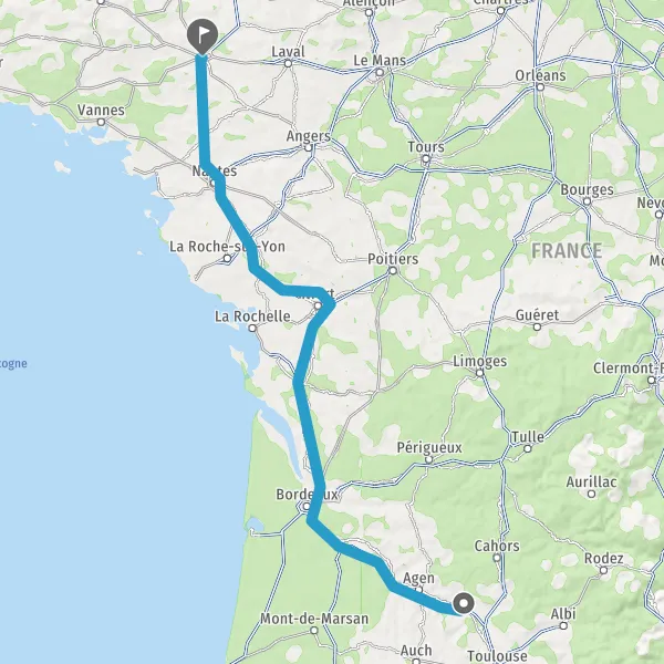 Prendre à droite et rejoindre A83. Continuer sur 150 kilomètres