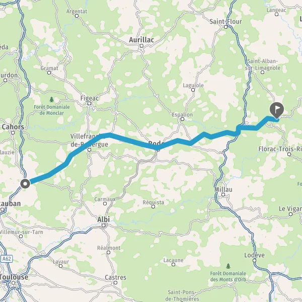 Tourner à droite sur D45 (Route de Saint-Geniez) et continuer sur 13 kilomètres