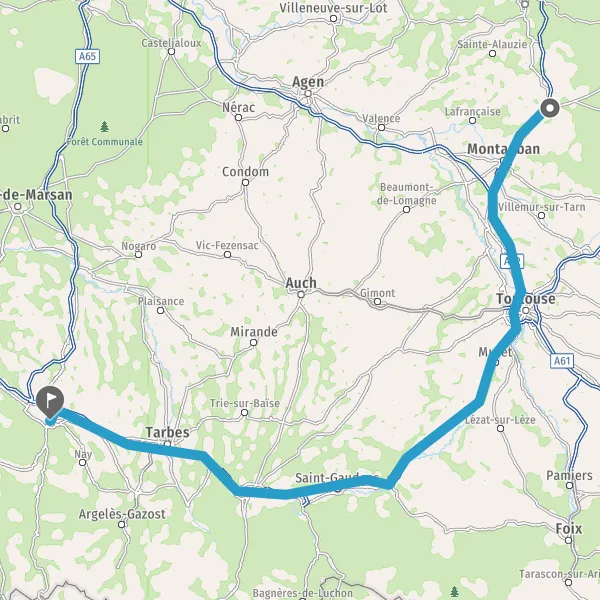 Prendre à droite et rejoindre A62. Continuer sur 650 mètres