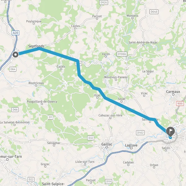 Tourner à droite sur D25 (Route d'Albi) et continuer sur 2 kilomètre