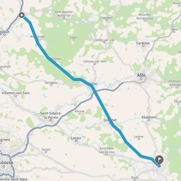 Tourner à gauche sur D964 (Route de Graulhet) et continuer sur 14 kilomètres