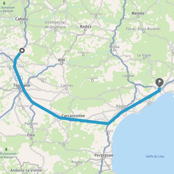 Continuer et rejoindre A9 E15 E80. Continuer sur 84 kilomètres