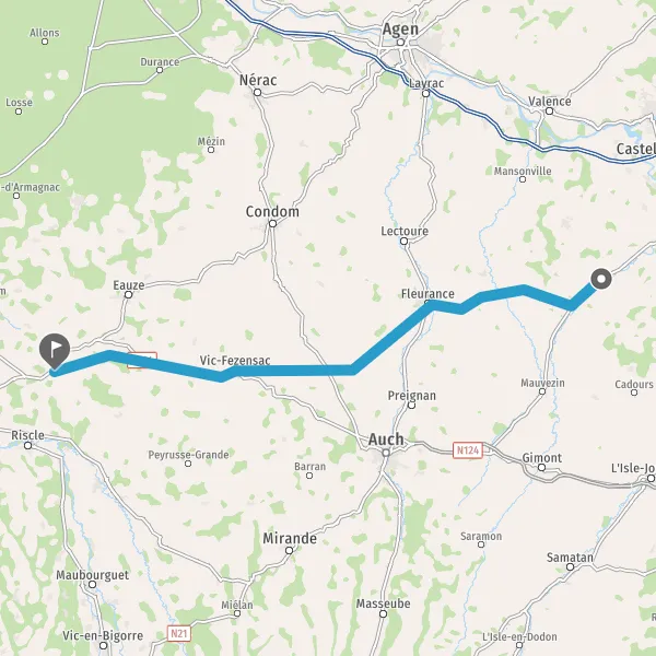 Au rond-point, prendre la 1ère sortie sur D103 (Route de Vic-Fezensac) et continuer sur 13 kilomètres
