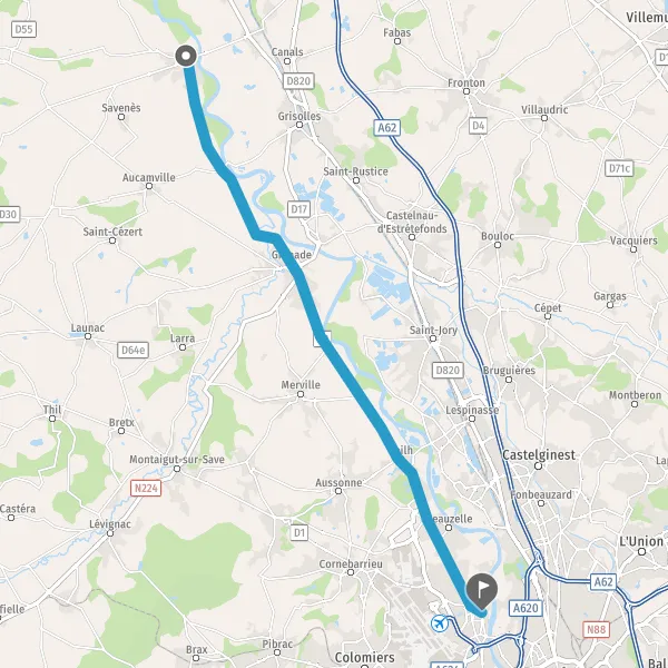 Au rond-point, prendre la 2ème sortie sur D2 (Route de Toulouse) et continuer sur 2,8 kilomètres