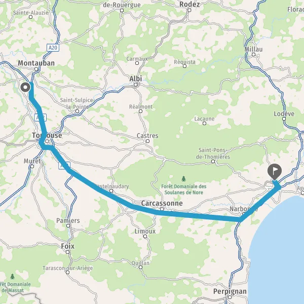 Prendre à gauche et rejoindre A61. Continuer sur 20 kilomètres
