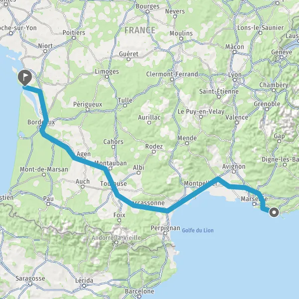 Prendre à droite et rejoindre A61. Continuer sur 136 kilomètres