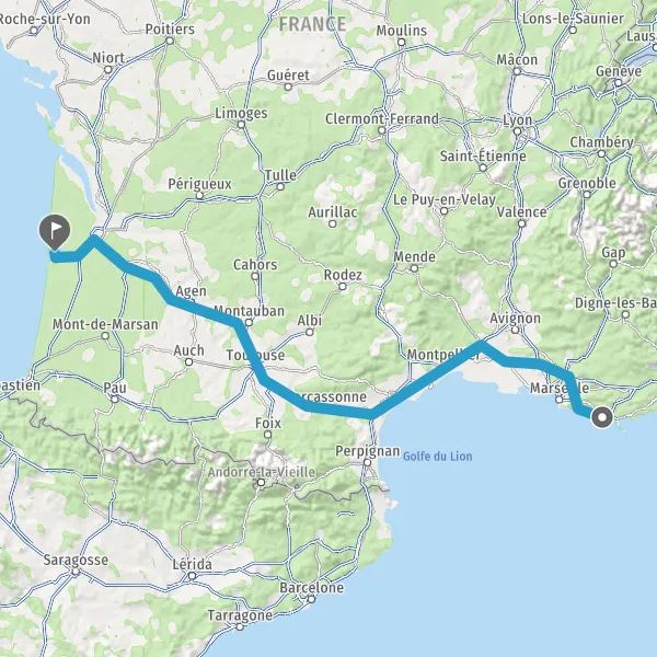 Prendre à droite et rejoindre A61. Continuer sur 136 kilomètres